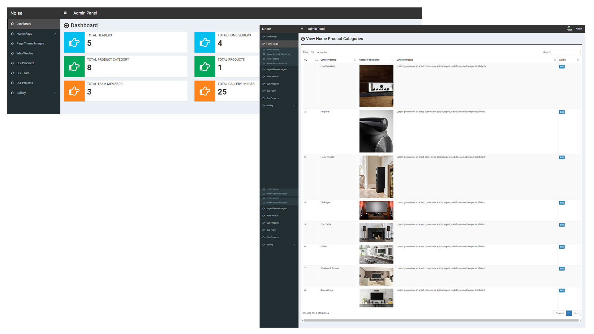 We developed the Content Management System for Noise as well. It let's the client have full access over all the contents on all the pages of the website.